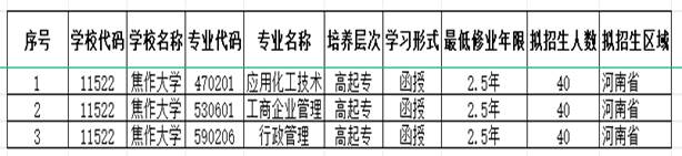 我校2024年成人高等学历继续教育专科计划招生120人,设3个专业(后附招生专业),学校只有校本部招生,招生咨询电话:0391—2985805。学校未委托任何中介机构或个人代理招生工作,不接受中介机构生源,在学生录取报到前不收取任何费用。望广大考生知悉。公示时间为9月1日至16日。